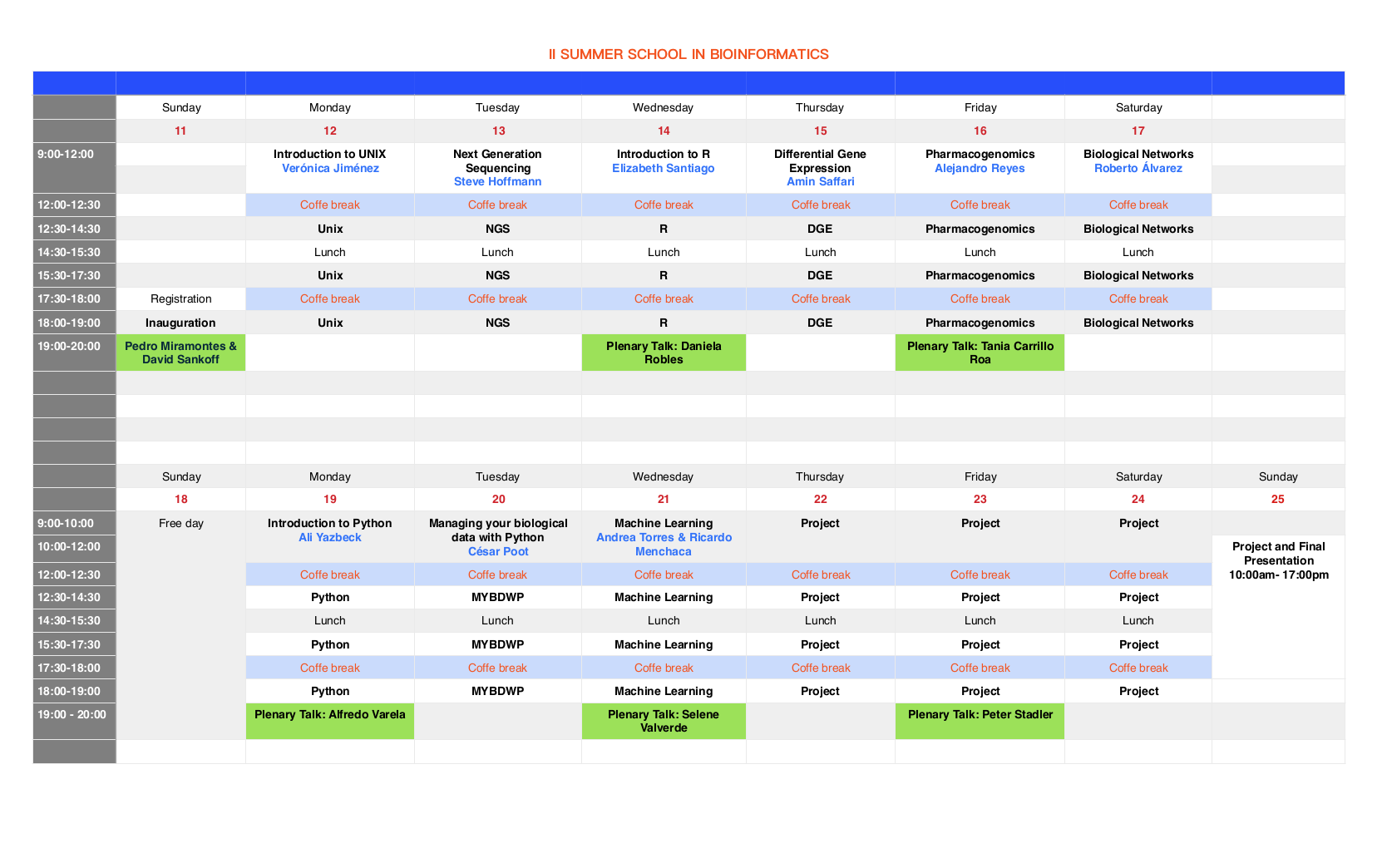 La II Escuela de Verano en Bioinformática , organizada por el Instituto de Matemáticas en colaboración con el Instituto de Neurobiología se llevará a cabo del día Domingo 11 de junio al domingo 25 de junio, en el Centro Académico Cultural de la UNAM campus Juriquilla.